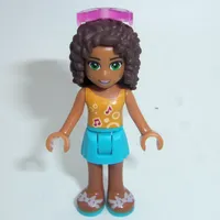 Andrea - Bright Light Orange Top, Light Aqua Skirt, Sunglasses