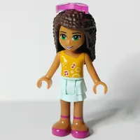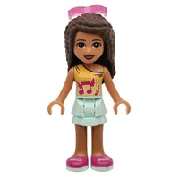 Andrea - Dark Turquoise Top, Magenta Skirt, Dark Brown Hair, Glasses