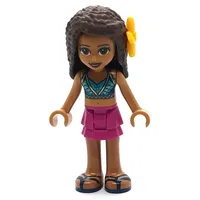 Andrea - Dark Azure Bikini, Magenta Skirt, Flower