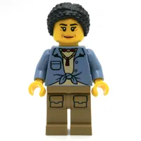Woman, Sand Blue Shirt, Dark Tan Legs, Black Hair