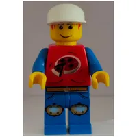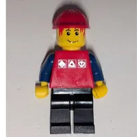 Man, Red Top with Dark Blue Arms, Tan Legs, Red Cap