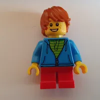 Boy, Green Jacket, Short Red Legs, Black Helmet with Visor