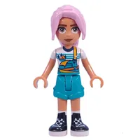 Woman, Blue, Yellow, and Green Shirt, Bright Pink Hair