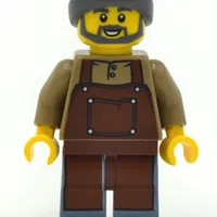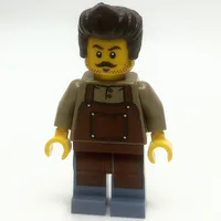 Train Worker, Dark Tan Torso, Sand Blue Legs, Reddish Brown Apron, White Beard