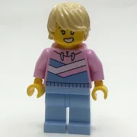 Boy, Bright Pink Jacket, Dark Blue Short Legs, Tan Hair