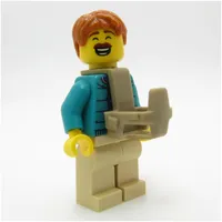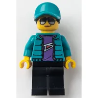 Kid - Dark Turquoise Torso, Medium Lavender Legs, Bright Light Orange Helmet, Black Hair