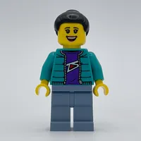 Child - Dark Turquoise Torso, Blue Medium Legs, Flat Silver Knight Helmet