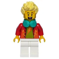 Boy, Open Dark Azure Hoodie with Zipper, Short Dark Tan Legs, Bright Light Yellow Hair
