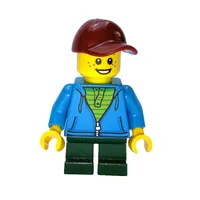 Man, Blue Vest, Dark Tan Legs, Dark Red Cap