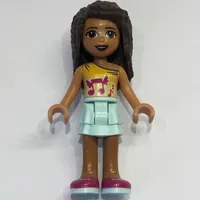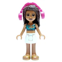 Andrea - Bright Light Orange Top, Light Aqua Skirt, Magenta Headphone