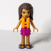 Andrea - Bright Light Orange Top, Light Aqua Skirt, Sunglasses