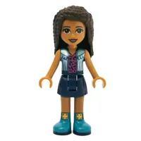 Andrea - Dark Turquoise Top, Magenta Skirt, Dark Brown Hair, Glasses