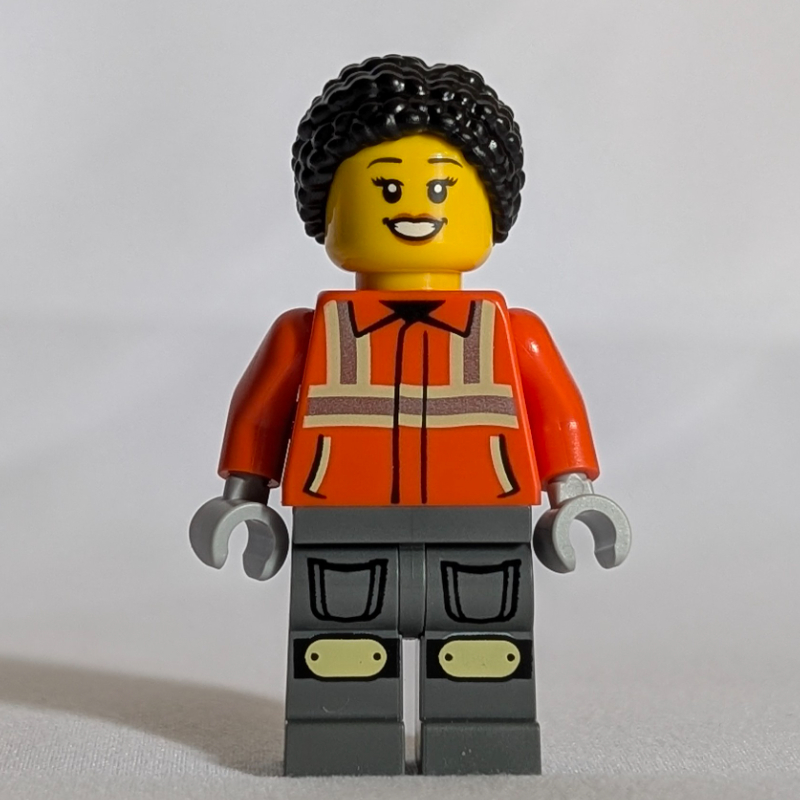 Construction Worker, Orange Safety Jacket, Dark Bluish Grey Legs, Black Hair