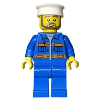Coast Guard Ship Captain, Light Bluish Gray Shirt with Badge, White Hat, Beard and Glasses