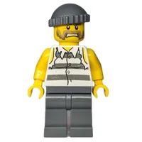 Criminal, Torn Prison Shirt, Dark Bluish Gray Legs, Dark Bluish Gray Hat, Beard