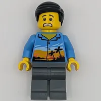 Man, Open Dark Azure Hawaiian Shirt, Blue Legs, Black Hair