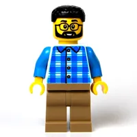LEGO Employee, Dark Blue Torso, Dark Tan Legs, Black Hair