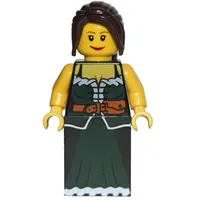 Barmaid - Dark Green Torso, Dark Bluish Grey Slope for Legs, Dark Brown Hair