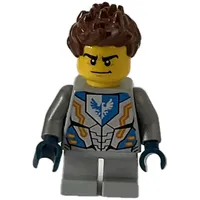 Boy, White and Blue Hoodie, Short Light Bluish Gray Legs, Light Bluish Gray Helmet