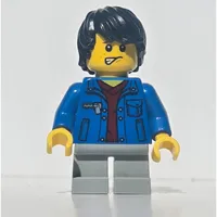 Kid - Blue Torso, Light Bluish Grey Legs, Black Hair