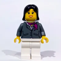 Woman, Dark Bluish Gray Jacket with Magenta Scarf, White Legs, Black Hair