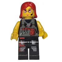 Woman, Black Vest over Blue Top, Red Legs, Red Hair