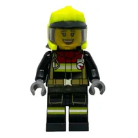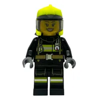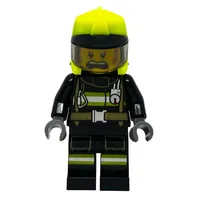 Firefighter, Black Suit, Vibrant Green Helmet with Visor, Glasses