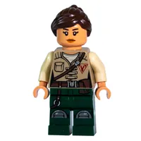 Swamp Police / Ranger, Woman, Dark Tan Vest with Zipper, Radio, and Badge, Dark Blue Legs, Dark Brown Hair