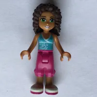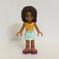 Andrea - Bright Light Orange Top, Light Aqua Skirt, Magenta Party Hat