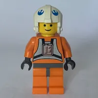 Luke Skywalker, Orange Rebel Pilot Outfit, Yellow Skin, Dark Bluish Gray Hips (3626c Head)