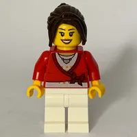 Woman, Cardigan Tied with Bow and Necklace, Light Bluish Gray Legs, Dark Brown Hair