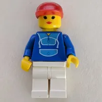 Woman, Blue and White Jogging Suit, Blue Cap, Yellow Life Vest